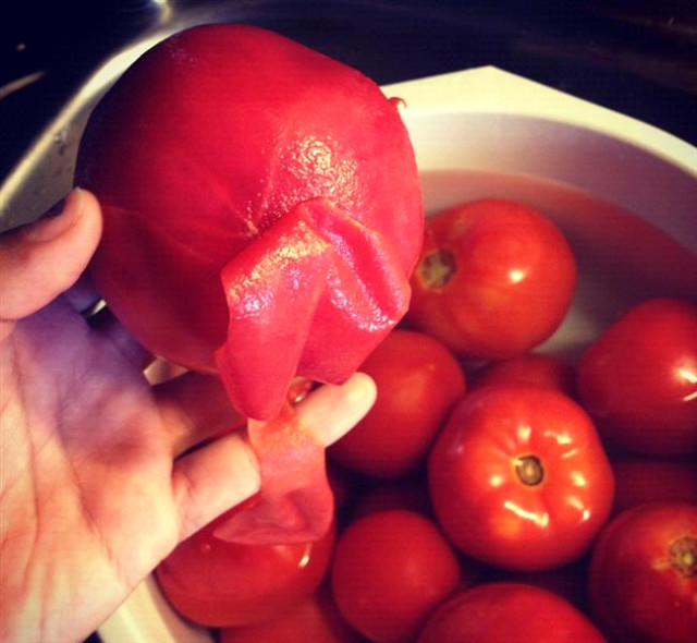 Ne kadar yıkarsak yıkayalım, domatesleri tarım ilaçlarından arındıramayacağımız için kabuklarını soymak zorunda kalıyoruz. Ama domates kabuğunu soymak çok da kolay değildir ve kadınları bazen çileden çıkarır.