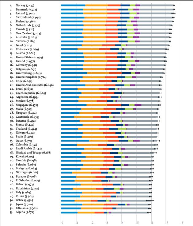 Raporda ilk 10’u Norveç’in yanında Danimarka, İzlanda, İsviçre, Finlandiya, Hollanda, Kanada, Yeni Zelanda, Avustralya ve İsveç oluşturdu.