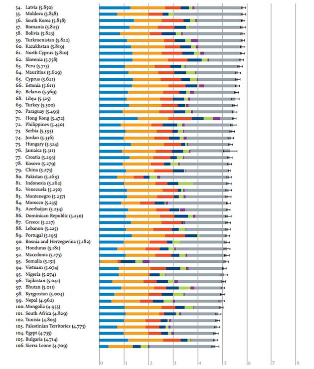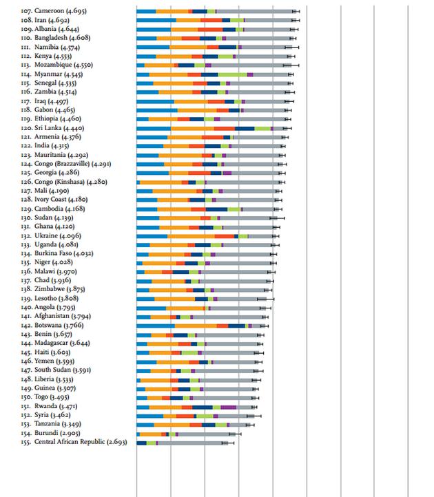 Listenin en sonunda ise Güney Sudan, Liberya, Gine, Togo, Ruanda, Tanzanya, Burundi ve Orta Afrika Cumhuriyeti oluşturdu.
