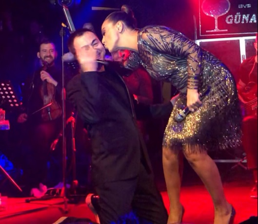 Gündeş, prodüktör Hüseyin Emre’nin mikrofonu alıp “Huysuz oğlumla sevgili kızımı barıştıralım mı?” diye sorması üzerine Ortaç’ı sahnesine davet etti. İki isim, birbirlerini öperek küslüğe son verdi.