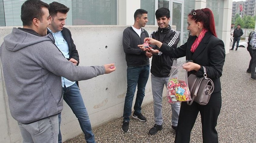 Duruşmanın ardından dümbelek ve davul çaldıran Karaş, vatandaşlara kına dağıttı. Çok mutlu olduğunu ifade eden Meryem Karaş, çiftetelli oynadı. Adliye önünde renkli görüntüler oluşurken, vatandaşlar meraklı gözlerle neşeli kadını izledi.