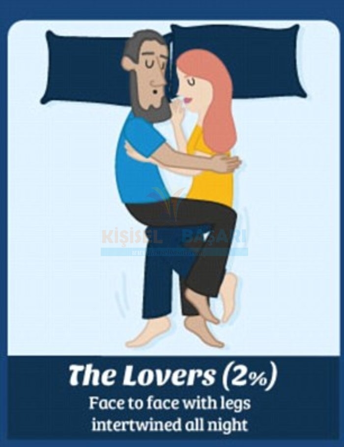 Aşıklar Pozisyonu : Çiftin bir bağımsızlık sorunu olduğunu belirten bir uyuma şeklidir. Gecenin çoğunda çiftlerin yüzü bir birlerine dönüktür, bacaklar bir birine dolanmış şekildedir ve pozisyon, romantizm ve yakınlık içerir. Çiftlerin yaklaşık % 2’si bu pozisyonu tercih eder.
