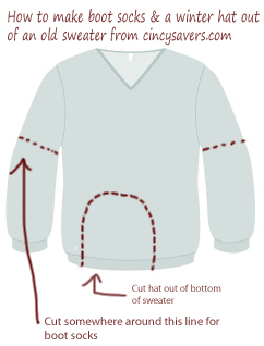 Kazağın gövde kısmından bere için iki parça keseceğiz ama kazağın etek manşetini berenin manşeti için, işin içine katacağız. Kollarından da iki adet çok şık tozluk keseceğiz.