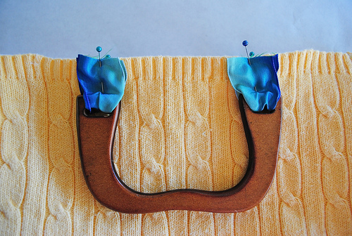 Eski sarı kazaktan çantanın saplarını ilave etmek