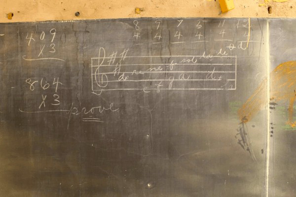 Tahtada 100 yıl öncesine ait matematik işlemleri, şarkı sözleri ve el yazıları vardı.