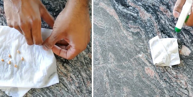 Kabukları ayıklanmış çekirdekleri ıslattığınız havlu kağıdın ortasına yerleştirin ve çekirdekler iç kısımda kalacak şekilde katlayın.