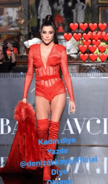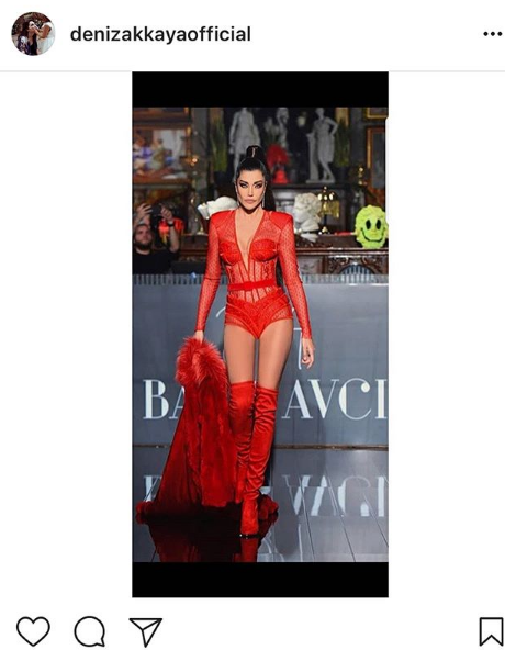 Deniz Akkaya defilede çekilmiş bu fotoğrafını Instagram hesabından paylaştı. Ancak fotoğrafa photoshop uyguladı.