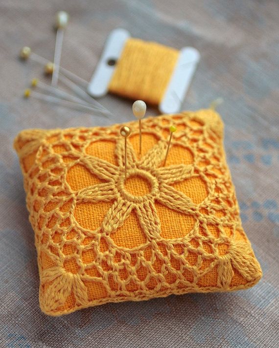 sarı tığ işi iğnedenlik modeli