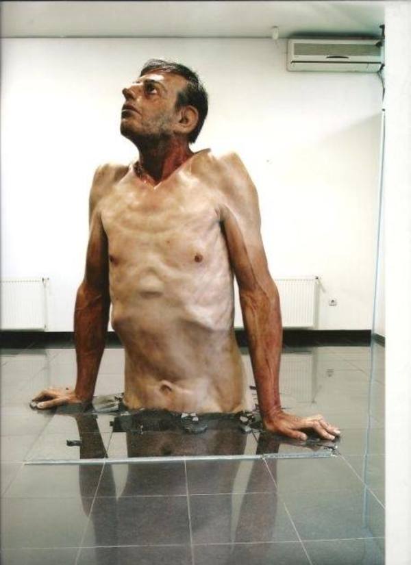 Silikon ile yapılan heykelin üstünde su damlalarının gerçekçiliğine tekrar bakın!Bilbao Güzel Sanatlar Müzesi’ndeki yarışmada boy gösteren bir diğer başarılı sanatçı da Sırp Marc Siljan.