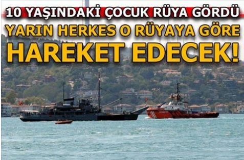 Öte yandan Akıntıburnu’nda arama ve kurtarma çalışmaları sürerken, 10 yaşındaki bir çocuğun rüyasında yaklaşık 5 gündür 4-5 kez, kaybolan Yıldırım’ı Arnavuköy Karaburun sahilinde kayalıklarda sıkıştığını görmesi üzerine yarın orada da arama ve kurtarma çalışması başlatılacağı öğrenildi. Çocuğun rüyasında, ‘anne ve baba beni kurtarın’ dediği ifade edildi.