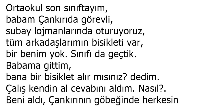 Yinede deydi. Çünkü yanına ulaştığımda henüz sağdı. Onun son sözlerini duymak, dünyalara bedeldi benim için.Ve hıçkırarak arkadaşının son sözlerini tekrarladı: