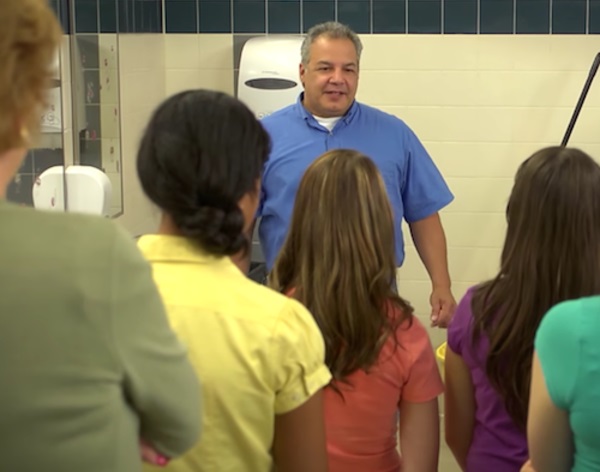 Müdürden izin alan hizmetli, aynaya ruj izi bıraktığından şüphelendiği kızları tuvalete çağırdı. Onlara, aynada bıraktıkları ruj izlerini temizlemenin ne kadar zor olduğunu gösterdi.