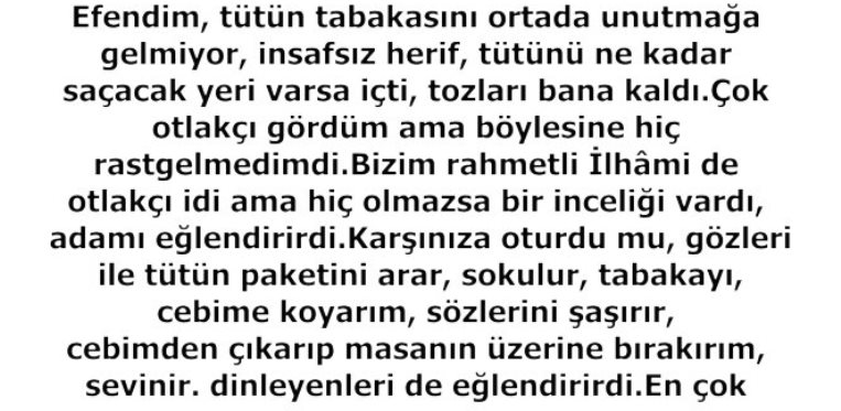 “Anladın mı simdi benim tüm hayatım boyunca niye evlenemediğimi? Doyumsuz olmasaydın eğer daha güzeli, daha iyisi, bunun rengi, bunun dikeni diye… Ve sarılsaydın dört elle sevdiğini, beğendiğini hissettiğin o güzelim güllerden birine, ellerin bomboş olmazdı benim gibi yolun sonuna geldiğinde…