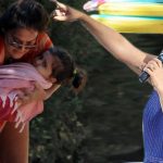Demet Akalın, önceki gün Bodrum’da, kızı Hira ve yardımcılarıyla plaja doğru yürürken objektife takıldı. Sıcak yüzünden Hira’yı taşımakta zorlanan Akalın, sık sık mola verdi.