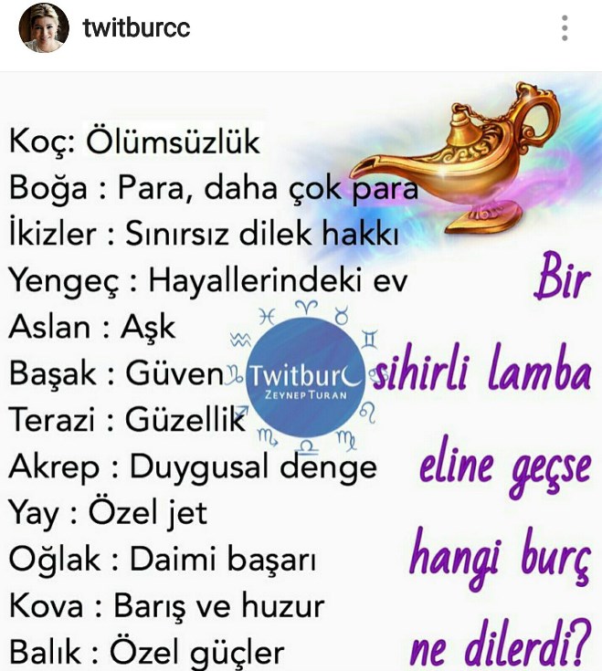 HomeAstrolojiHangi burcun eline sihirli lamba geçerse ne dilermiş ? Hangi burcun eline sihirli lamba geçerse ne dilermiş ? By admin Astroloji 0 Comments Burçlarla ilgili paylaşımımızda bu hafta da burçların eline bir sihirli lamba geçse acaba ne yaparlardı sorusunun cevabını aradıkve çok ilginç bir sayfa ortaya çıktı. Related Posts En Çok Psikopat Ve Katiller Bu Burçtan Çıkıyor : Bakalım Sizin Burcunuz Kaçıncı Sırada ! GÜLMEKTEN ÖLDÜM OKUYUN KESİN Kadınlar ve Burçları… 15 Soruda Burcunuz – Gerçekten Burcunuzun İnsanı mısınız? About Author admin