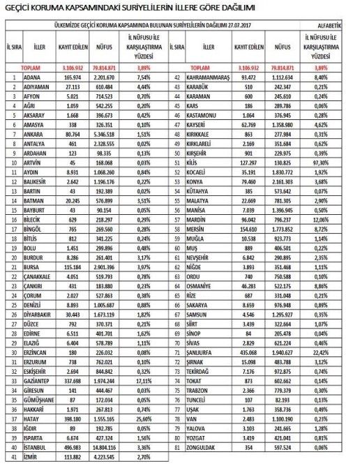 Ülkemizde resmi kayıt altına alınan Suriyeli mülteci sayısı, 3 milyon 106 bin 932 kişi. Sadece 235 bin Suriyeli geçici barınma merkezlerinde kalırken, geri kalanı ise 81 ile dağılmış durumda.