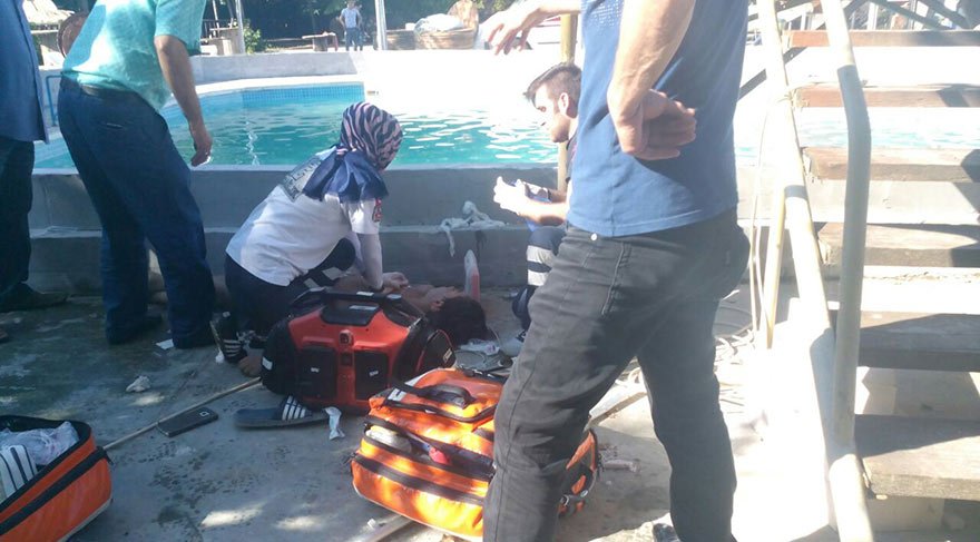 İşletme sahibi Mehmet Kaya ile oğlu Kadir Kaya da suda çırpınan çocukları kurtarmak için suya atladı. 5 kişi akıma kapılırken, görevliler elektriği kesti. Bu sırada havuzun kenarında metal aksamlara dokunan 2 kişi de akıma kapılınca kendilerini geri çekerek canlarını kurtardı.