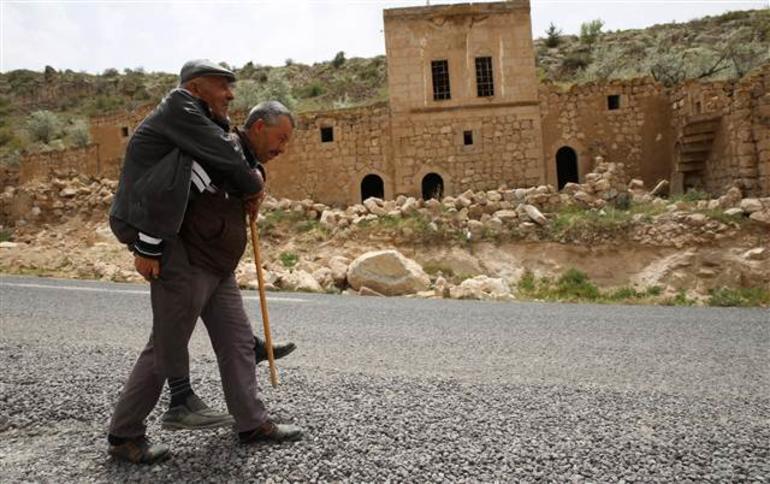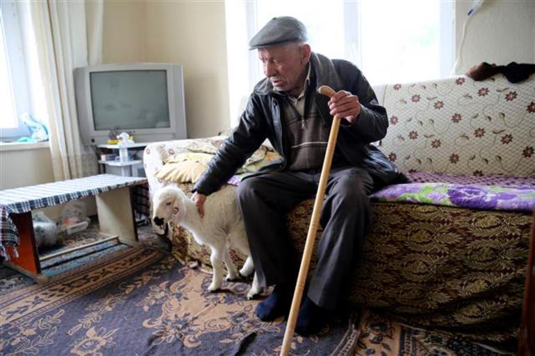 Hayalet köyde sadece iki kişi yaşıyorYaşlılıktan dolayı yürümekte zorluk çeken babasını zaman zaman sırtına alıp, kimi zaman koluna girip köyün tenha sokaklarında gezen İsmail Varol, beslediği birkaç koyunu ve arazisine ektiği mahsul sayesinde geçiniyor.