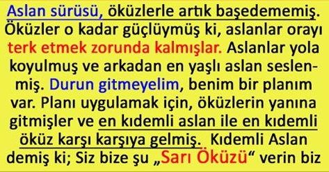 İhtiyar “Karar vermek için acele etmeyin” demiş.. Sadece ‘At kayıp’ deyin. Çünkü gerçek bu.. Ondan ötesi sizin yorumunuz ve verdiğiniz karar. Atimin kaybolması, bir talihsizlik mi, yoksa bir şans mı, bunu henüz bilmiyoruz. Çünkü bu olay henüz bir başlangıç. Arkasının nasıl geleceğini kimse bilemez..”