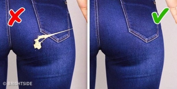4. Pantolon ya da diğer kıyafetlerinize sakız yapıştıysa, bir buz küpünü sakızın üzerinde gezdirin. Katı olan sakız kalıp halinde çıkarın.