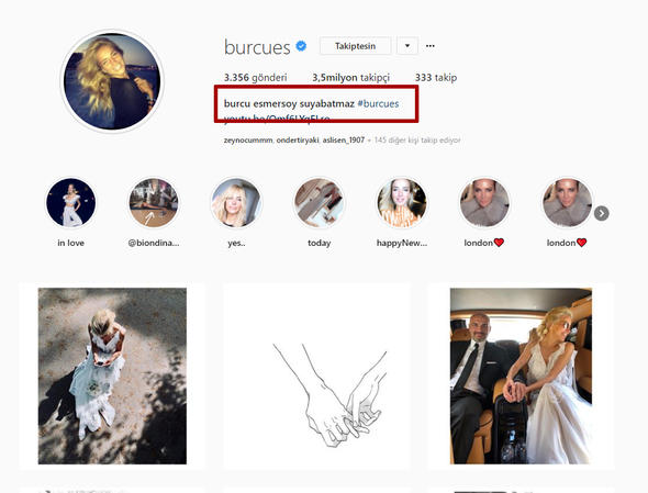 Esmersoy nikahtan kısa bir süre sonra sosyal medyadaki kullanıcı adını da değiştirdi. Burcu Esmersoy, eşinin soyadını kullanmaya başladı…