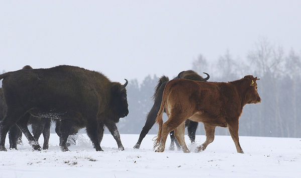 Bölgedeki bir çiftlikten kaçan Fransız limuzin türü ineğin, Bialowieza Ormanı’nda yaşayan vahşi bizon sürüsüne katıldığı ortaya çıktı. İneğin, kendisini bizon sürüsüne kabul ettirip kışı onlarla beraber geçirdiği için kurt saldırılarından korunup hayatta kalabildiği tahmin ediliyor.