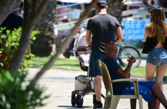 Özcan Deniz eşi Feyza Aktan Deniz ile oğlu Kuzey’i gezdirirken görüntülendi