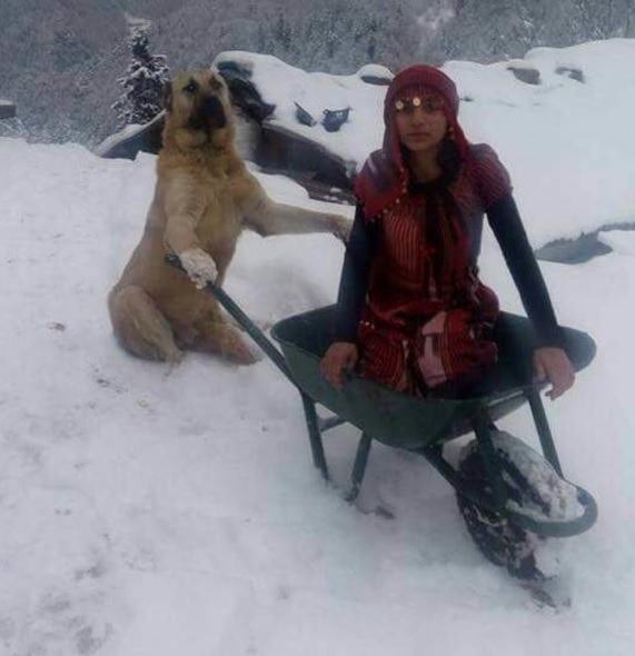 Keçiyi sırtına alan, yavrusunu da ‘Tomi’ isimli çoban köpeğinin sırtına bağladığı okul çantasına koyan Hamdu Sena, karla kaplı dik yoldan evine doğru yürüdü.