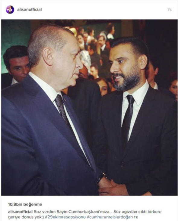 >br>Şarkıcı Alişan, 2016 yılındaki 29 Ekim Cumhuriyet Bayramı resepsiyonunda Cumhurbaşkanı Recep Tayyip Erdoğan’a 6 ay içinde evleneceğine yönelik söz vermişti.