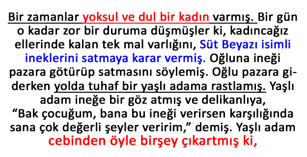 Yaşlı adamın eşi evde tereyağ yapıyordu.Kocası ise her gün yakınlarındaki bakkala götürüp satıyor,onunla geçiniyorlardı.
