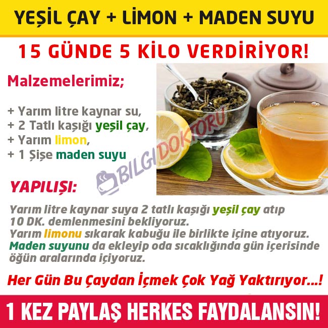 Son günlerin popüler diyetleri arasında giren bu mucizevi çayın faydaları ve zayıflamaya olan etkisi inanılmaz derecede fazla. Bir çok kişi tarafından olumlu sonuçlar getiren form çayını (maden suyu + limon + yeşil çay) paylaşmak istedik. Peki, bu mucize çay nasıl zayıflatıyor, neden bu kadar popüler oldu? İşte cevabı;