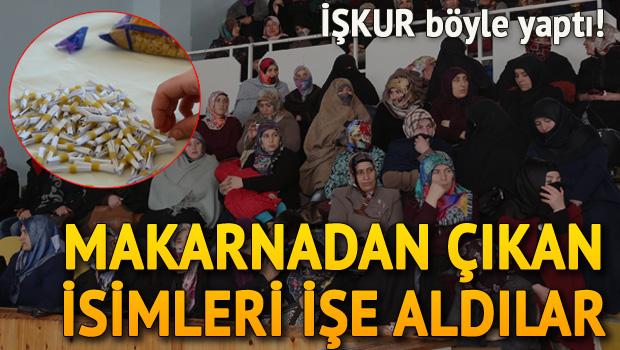 Bin 500 kişinin istihdam edileceği programa, 2 bin 700 başvuru oldu. Bunun üzerine kura çekimi yapıldı. Ancak kura çekimi için hazırlanan isimler, yüksük makarnanın içine konuldu.