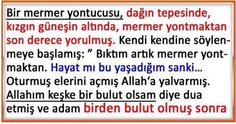 – Ben marifetli bir çocuk . gördüm, dedi ihtiyar. O da annesine yardıma koşan şu çocuk. O, Peygamber (s.a.v.) Efendimizin şu hadis-i şerifine uygun davrandı:“Herkese annesinin hizmetinde bulunmayı tavsiye ederim.”