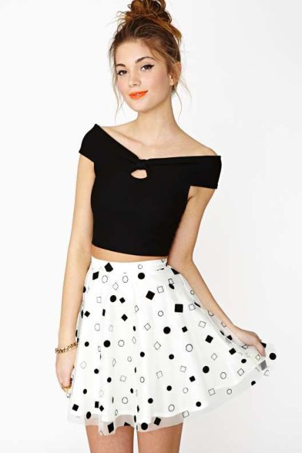 beyaz üzerine siyah puanlı mini etek çeşitleri