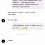 Mesajlarda Erdoğan, Hatice’yi sık sık yemeğe davet ediyor. Hatice “Kıskanç bir sevgilim var” diye teklifi geri çevirince de “Kaç kurtul… Vurmadın mı:)” diye karşılık veriyor. Mustafa Erdoğan, kendisine çok güvenmeyen şarkıcıyı “Bana güven” diye telkin ediyor.