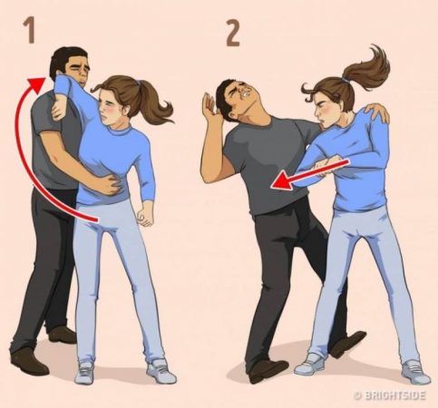 1. Biri size arkadan sarılmaya çalışıyorsa şekildeki gibi dirseğinizi kullanın!