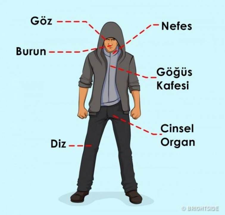 4. Yüz yüze bir saldırı söz konusu ise çene ve bacak arasına bir darbe yeterli olacaktır.