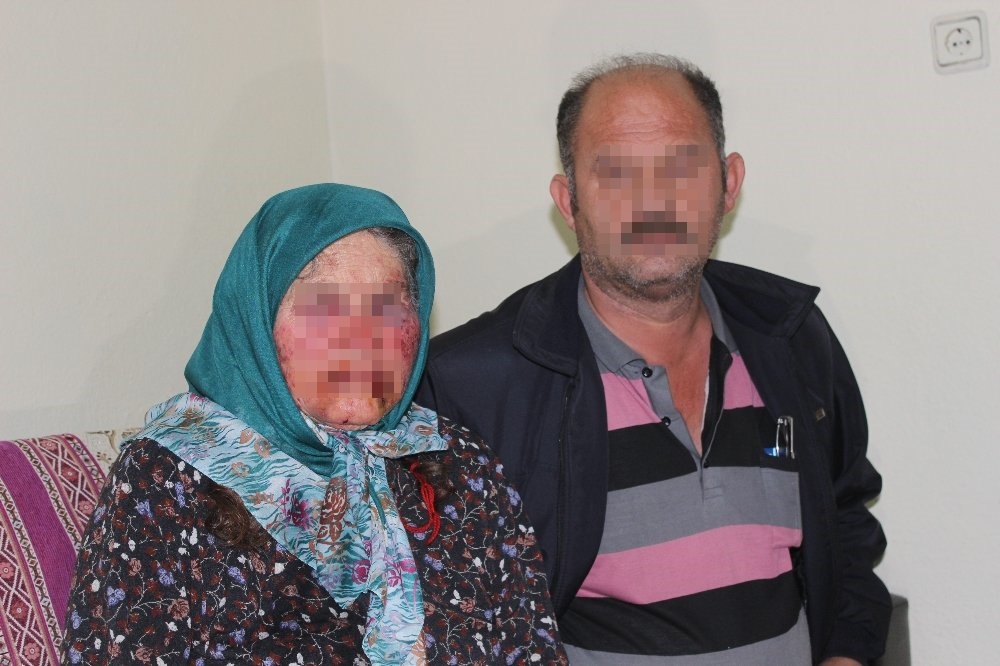 “Evime gelip, oğullarımı tanıdığını söyledi, bir bardak su istedi. Eve girdiğim sırada arkamdan gelip, yüzüme biber gazı sıktı. Ne olduğunu anlayamadan beni yere yatırıp, öldüreceğini söyleyerek para istedi. Boynumdaki altını koparıp aldı. Ardından ellerimi bantla bağladı. Ağzımı bantla bağlarken, bir parmağını bütün gücümle ısırdım. Beni yine dövdü, sürekli yüzüme vurdu. Beni bu hale soktu. Parmağını ısırınca kaçtı, ben de elime aldığım bıçakla bantları kesip yardım istedim. Ölümden döndüm.”