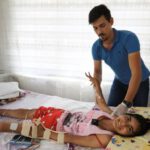 Hemen yoğun bakıma alınıp ameliyat edilen Yonca Hakgüden’in kafatası kemikleri alınarak ödem toplayan beyin baskısı hafifletildi. 80 gün yoğun bakımda yaşam mücadelesi veren, 20 gün de normal serviste kalan genç kız, 3 yılda 16 ameliyat geçirdi. Yatağa bağımlı hale gelen ve tüm vücudunda kasılmalar meydana gelen Yonca Hakgüden, çevresinde olup bitenlere ise yüzünde beliren tebessüm ve gözünden akan yaşlarla karşılık veriyor.