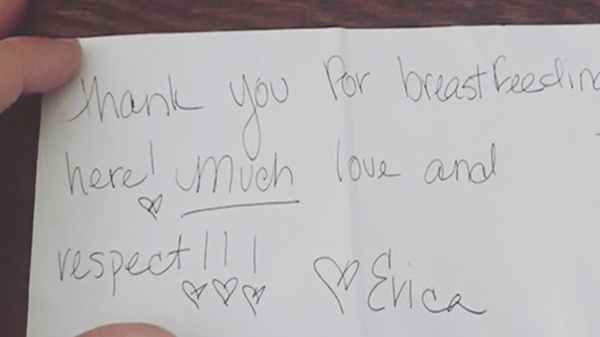Isabelle notu görünce gözyaşlarına hakim olamadı.Isabelle, Fox’a “Bunu paylaşmak istedim çünkü toplum içinde kızımı emzirirken birileri bunun ayıp olduğunu düşünüyor mu diye içimde hep bir şüphe oluyordu. Böyle bir pozitif yaklaşım sayesinde artık kızımı endişe etmeden emzirebiliyorum” dedi.Isabelle notu şimdilerde baş ucunda saklıyor. Böylesine küçük jestler gördüğünüz gibi insanları son derece mutlu edebiliyor.