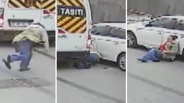 Olayı gören komşu bir kadının bağırmasıyla minibüs son anda durdu. Çevredekiler ve servis aracının sürücüsü Doğan’ın yardımına koştu. O anlar güvenlik kamerasına saniye saniye yansıdı.