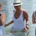 İkili, önceki gün Before Sunset Beach’teydi. Bir süre güneşlendikten sonra serinlemek için denize giren Tümer, suda bile şapkasını başından çıkarmadı.