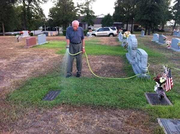 65 yıllık evliliklerinin ardından Liz 2014 yılında hayatını kaybetti. Çiftin beraber harika bir evlilikleri oldu. Jake, eşi öldükten sonra ise mezarıyla ilgilenmeye başladı. Her gün eşinin mezarını ziyarete gelen Jake, mezarın etrafını temizliyor ve burayı suluyordu. Sonuç olarak Liz’in mezarının üzeri yemyeşil çimlerle kaplandı.