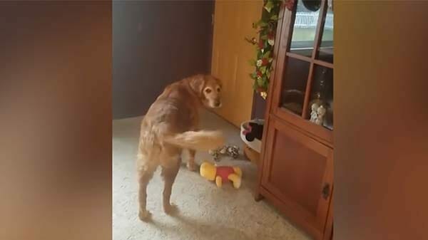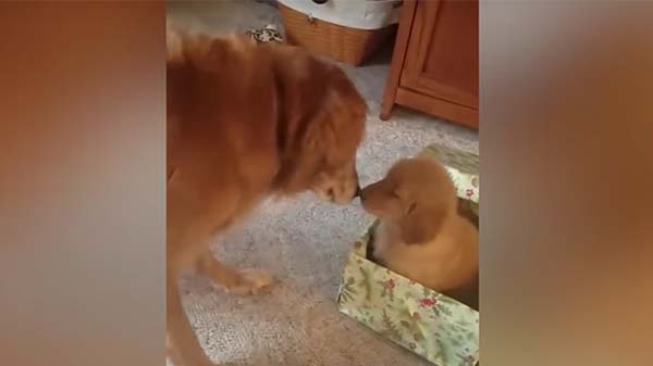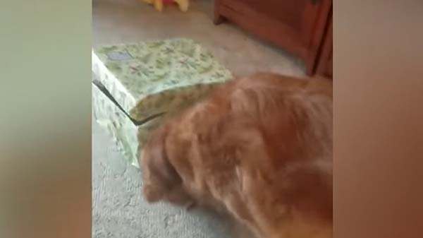 Golden retriever cinsi köpeğin verdiği tepki izleyenleri gülümsetti.