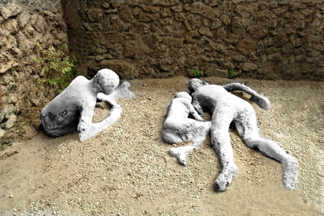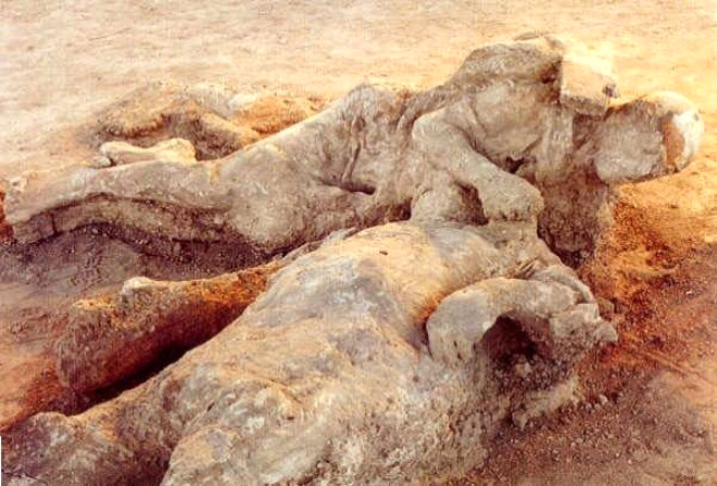 Herculaneum’da lavlardan dolayı insanlar heykel gibi olsa da Pompei’de küller daha etkili olduğundan kalıntıların çıkması daha zor olmuştur.