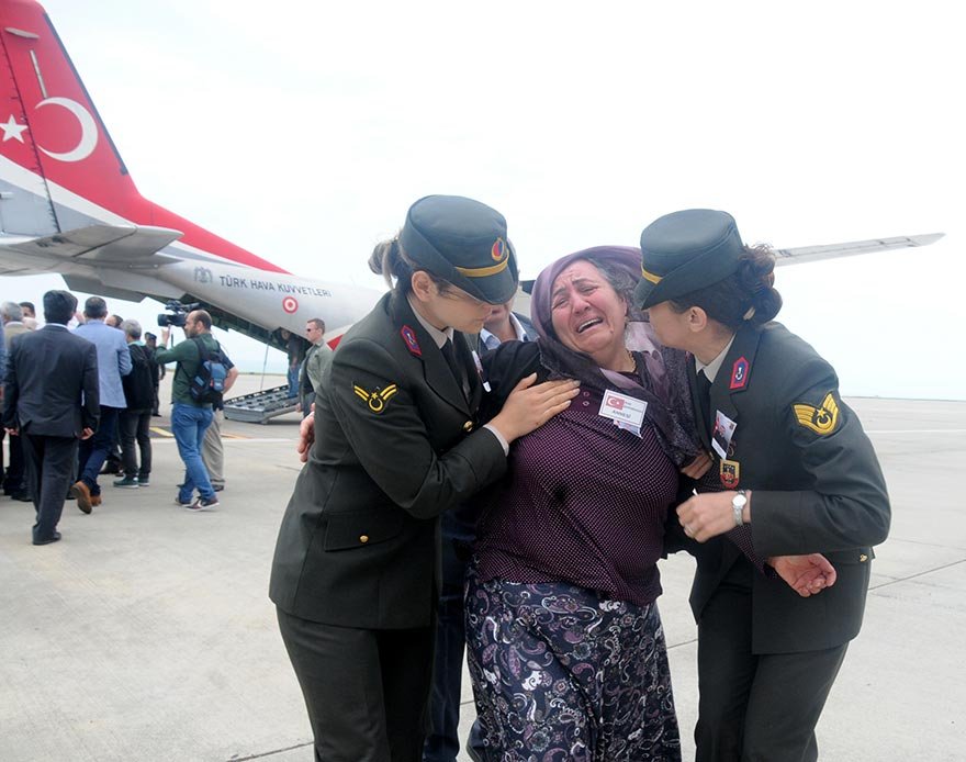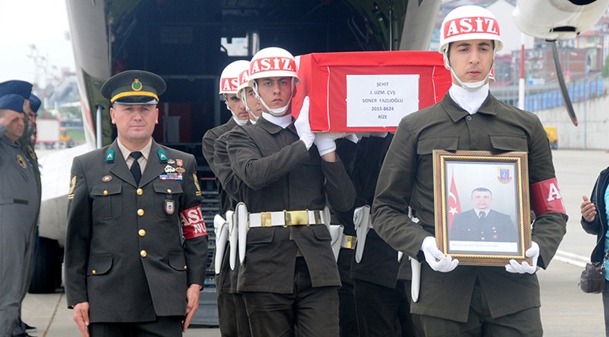 Batman’ın Kozluk İlçesi’ne bağlı Bekirhan Beldesi Jandarma Karakolu önündeki kontrol noktasına dün PKK’lı teröristin bombalı araçla düzenlediği saldırıda ağır yaralanan ve kaldırıldığı hastanede şehit olan Uzman Çavuş Soner Fazlıoğlu’nun cenazesi, Diyarbakır’da düzenlenen törenle, toprağa verilmek üzere memleketi Rize’ye uğurlandı. Tören sırasında Fazlıoğlu’nun annesi oğlunun acısına daha fazla dayanamayıp feryat etti. Uzman Çavuş Soner Fazlıoğlu’nun annesini güvenlik güçleri teselli etti.