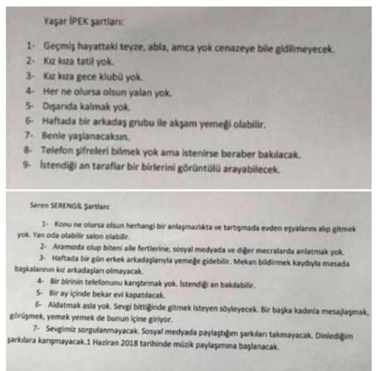 Seren Serengil ile Yaşar İpek’in barışma sözleşmesi ortaya çıktı
