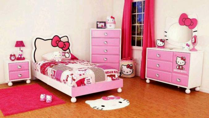 Homehello kity figürlü modern kız çocuk odası örnekleri