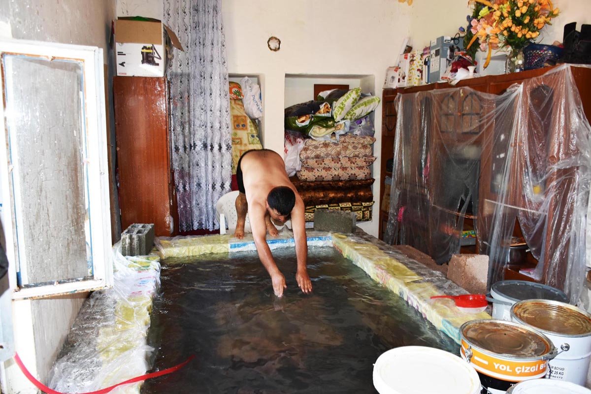 SICAKLARDAN BUNALINCA OTURMA ODASINI HAVUZA CEVIRDI