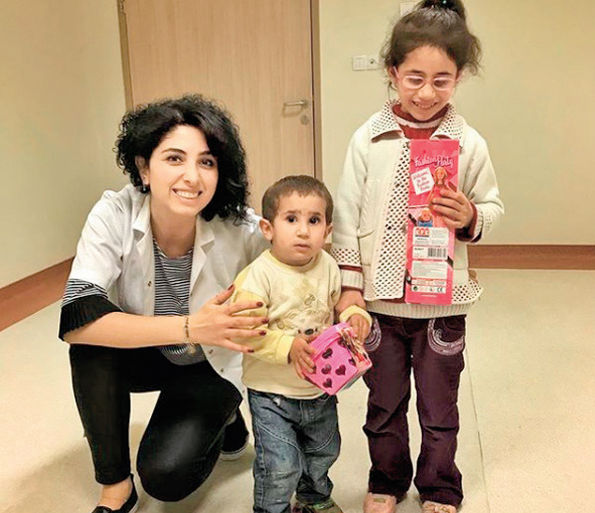 Bölgedeki 900 yardıma muhtaç öğrencinin giyimine önayak olan Kayhan, tedavi için hastaneye gelen her çocukla yakından ilgilendi.